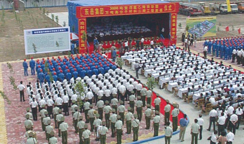 6月29日,集團(tuán)組織了聲勢浩大的創(chuàng)建20周年慶典活動。中央部委及省市縣黨政領(lǐng)導(dǎo),50多家國外著名企業(yè)、300家國內(nèi)著名企業(yè)和高校負(fù)責(zé)人1000余人齊聚東岳,與東岳干部員工共慶節(jié)日。慶祝儀式上,舉行了東岳研究院落成剪彩儀式。在集團(tuán)創(chuàng)建20周年文藝晚會上,閻維文、蔡國慶等藝術(shù)家為全體干部員工和當(dāng)?shù)馗刹咳罕姭I(xiàn)上了一場豐盛的文化大餐。